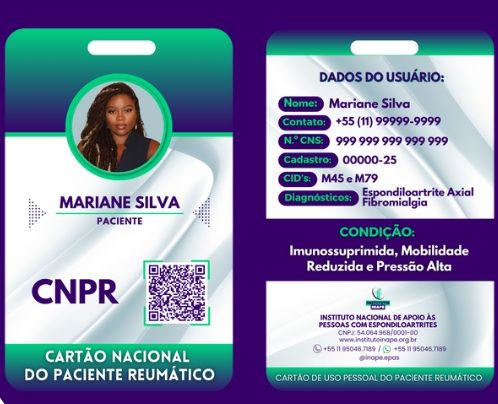 Com o Cartão CNPR – Cartão Nacional do Paciente Reumático com QR Code e o colar INAPE/Girassol, você garante prioridade, organização e segurança, além de carregar seus exames e ser tratado com o respeito que você merece.