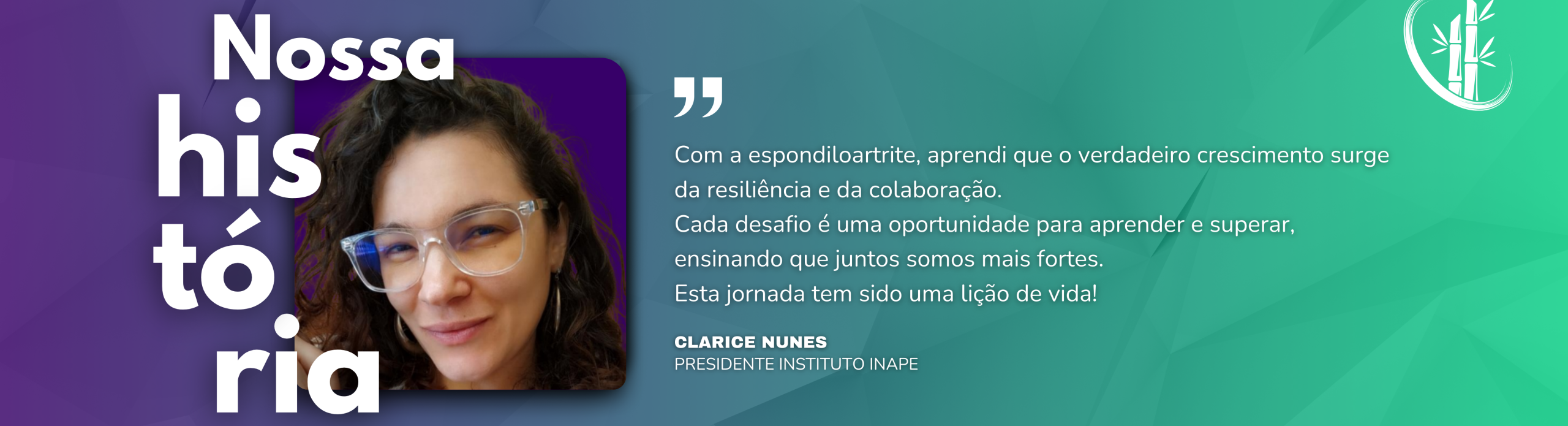 O Instituto Nacional de Apoio às Pessoas com Espondiloartrites (INAPE) surgiu a partir da experiência pessoal e do entendimento da idealizadora Clarice Nunes sobre os desafios enfrentados por aqueles que vivem com essa condição de saúde. Diagnosticada com espondiloartrite axial, Clarice vivenciou, em primeira mão, os dilemas diários relacionados à dor crônica, à dificuldade de locomoção, ao impacto psicológico causado pela incapacidade de realizar atividades cotidianas e à sensação de solidão e falta de apoio por falta do mercado de trabalho e da sociedade.
